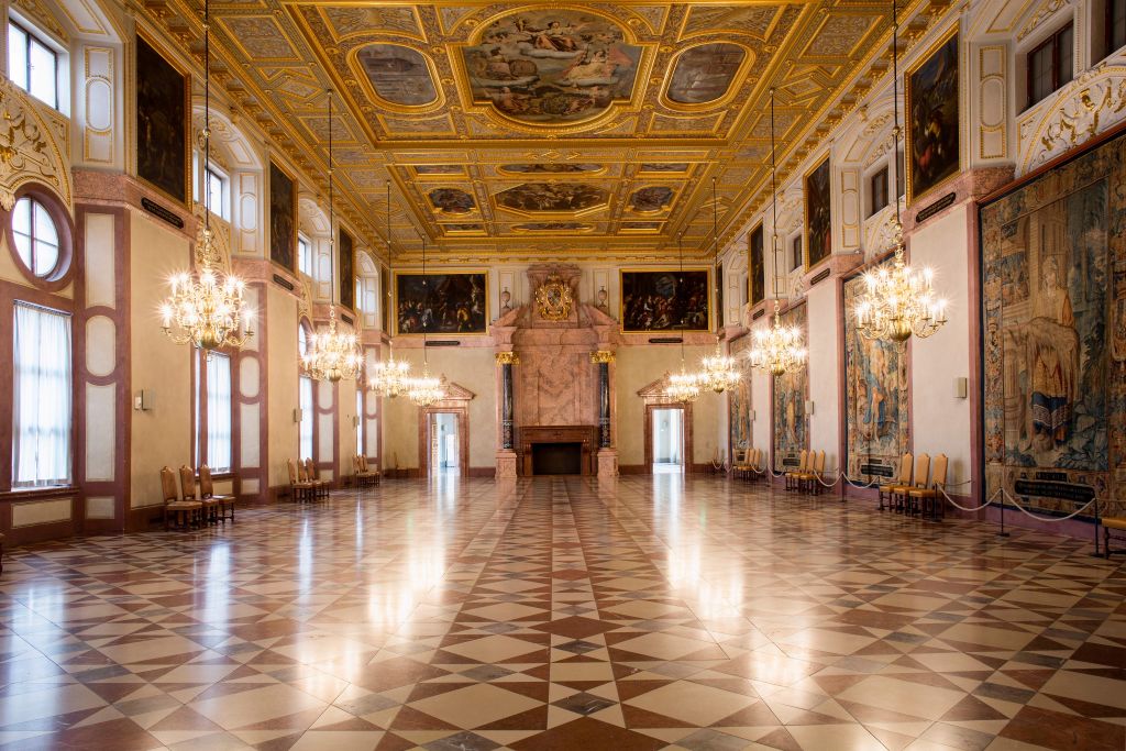 Gerne nehme ich Sie mit auf eine Zeitreise durch die Jahrhunderte, durch Prunkräume, Gemächer, Hofkirchen und Innenhöfe. Allesamt reich ausgestattet mit Kostbarkeiten, bewusst vom jeweiligen Herzog, Kurfürst oder König ausgewählt, um damit – natürlich dem Geschmack der damaligen Mode entsprechend – das ‚Who is Who‘ des Europäischen Adels zu beeindrucken.
